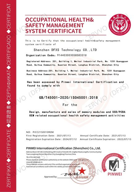 | Ámbito de aplicación / Cocina: | Design, manufacture and sales of memory modules and ssd/pcba oem related occupational health safety management activities |