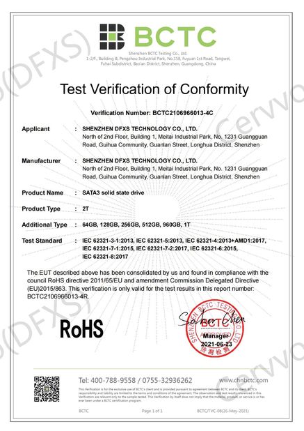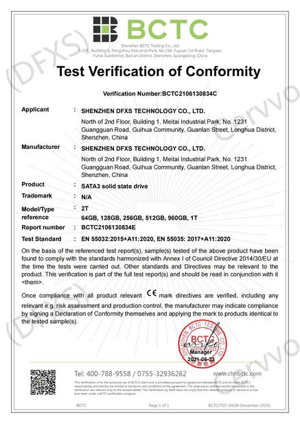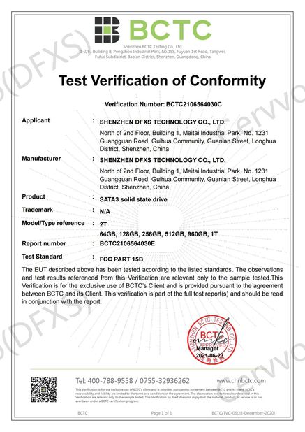 | Estándar: | FCC for SATA3 solid state drive |