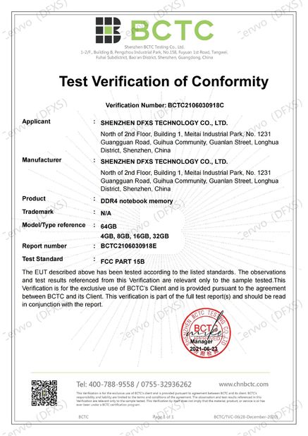 | Estándar: | FCC for DDR4 notebook memory |