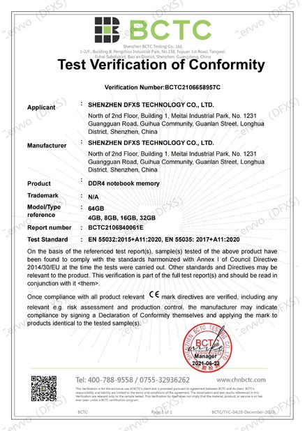 | Estándar: | EMC for DDR4 notebook memory |