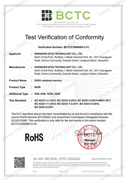 | Estándar: | RoHS for DDR4 SODIMM RAM |