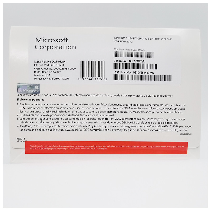 Resaltar: | Windows 11 Pro de 64 bits también,Preactivado Windows 11 Pro OEM,Versión multilingüe de Windows 11 Pro OEM |
